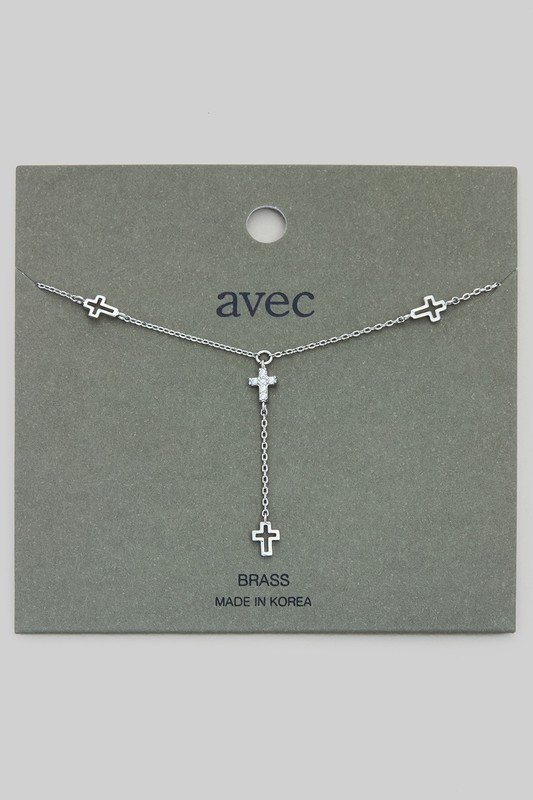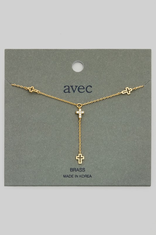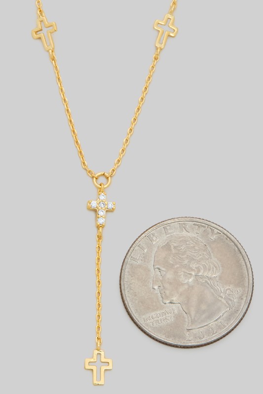 Y Drop Cutout And Cz Cross Charm Necklace